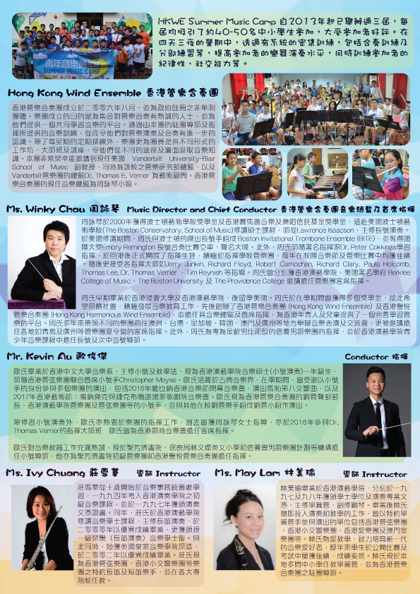 活動:樂團訓練、分部訓練、燒烤、遊戲、成果分享音樂會(讓家長欣賞小朋友於活動取得的成果)